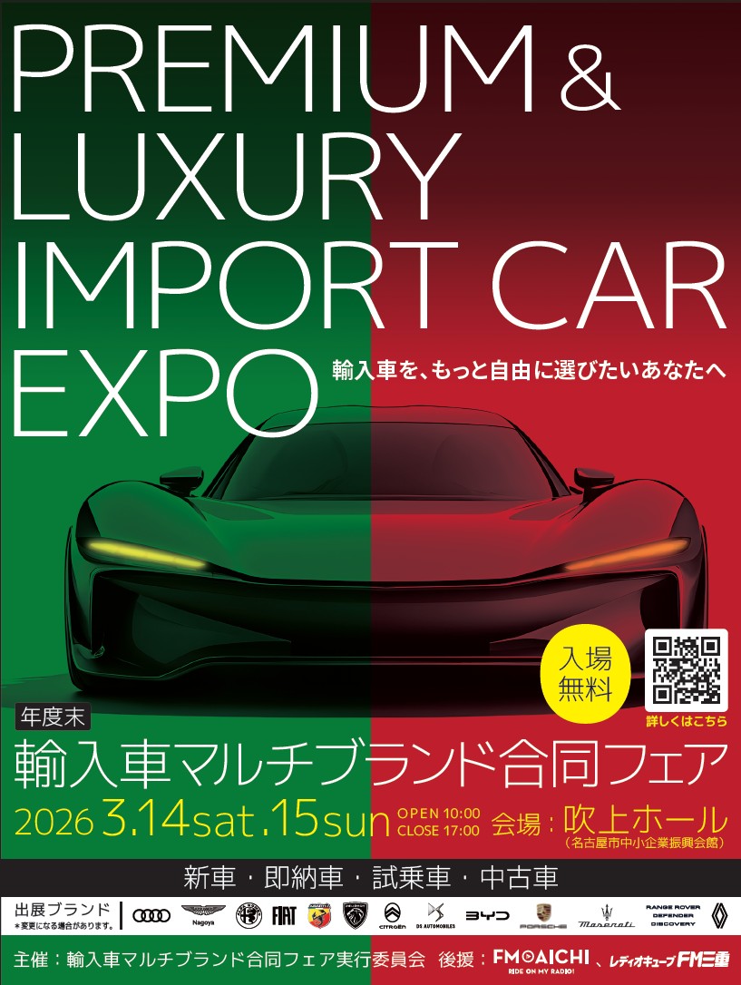 ※PREMIUM&LUXURY IMPORT CAR EXPOは、3/14と3/15の二日間にわたって10:00~17:00で開催。