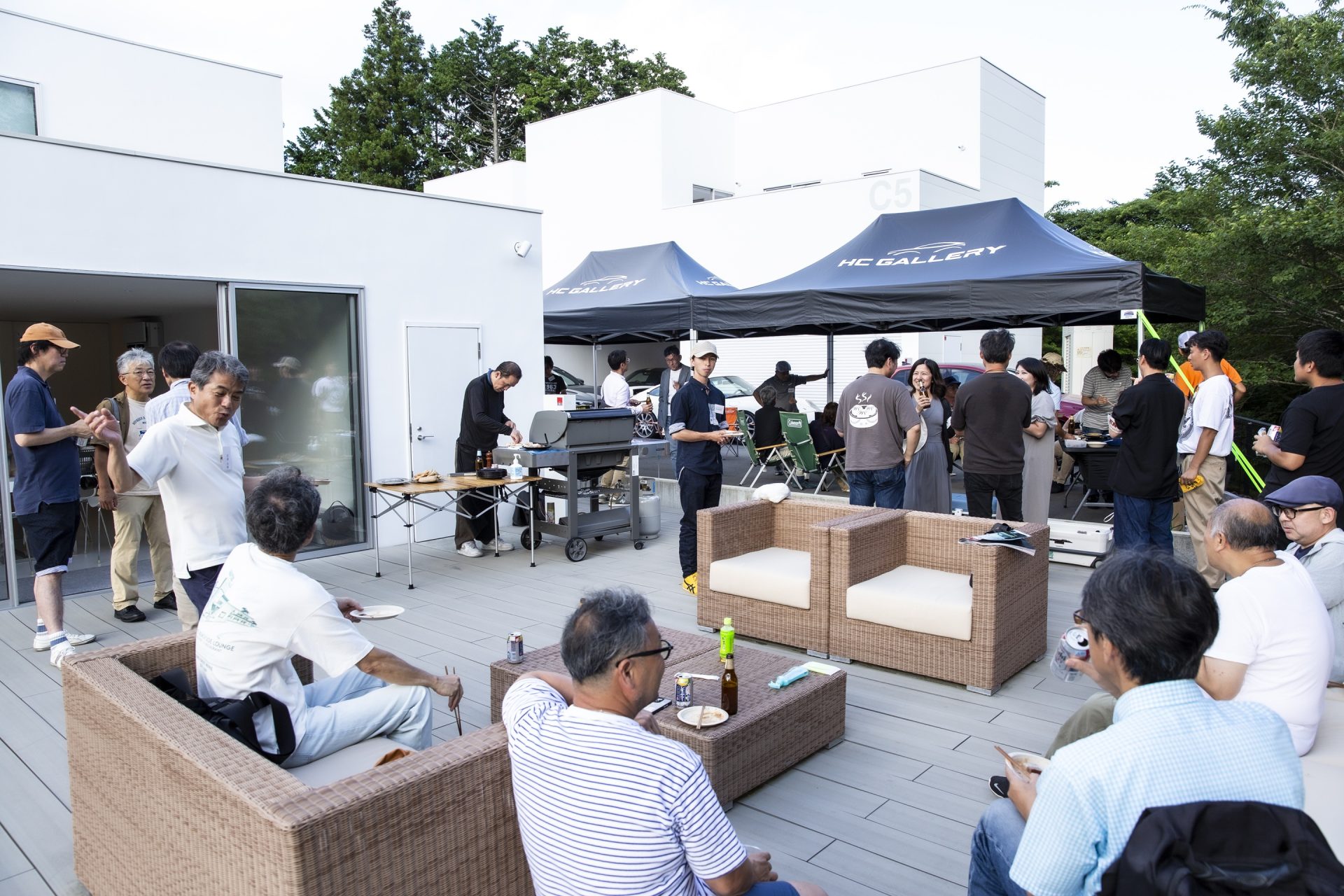 BBQ大会の会場となったのは、HC VILLAGE。ガレージ付きの白亜のリゾートハウスが立ち並ぶ、クルマ好きには垂涎の施設です。今回は、普段はオープンにしていないこの施設を特別に開けてもらい、その中のテラス付きの1棟をお借りして、BBQ大会の会場とさせていただいた次第です。